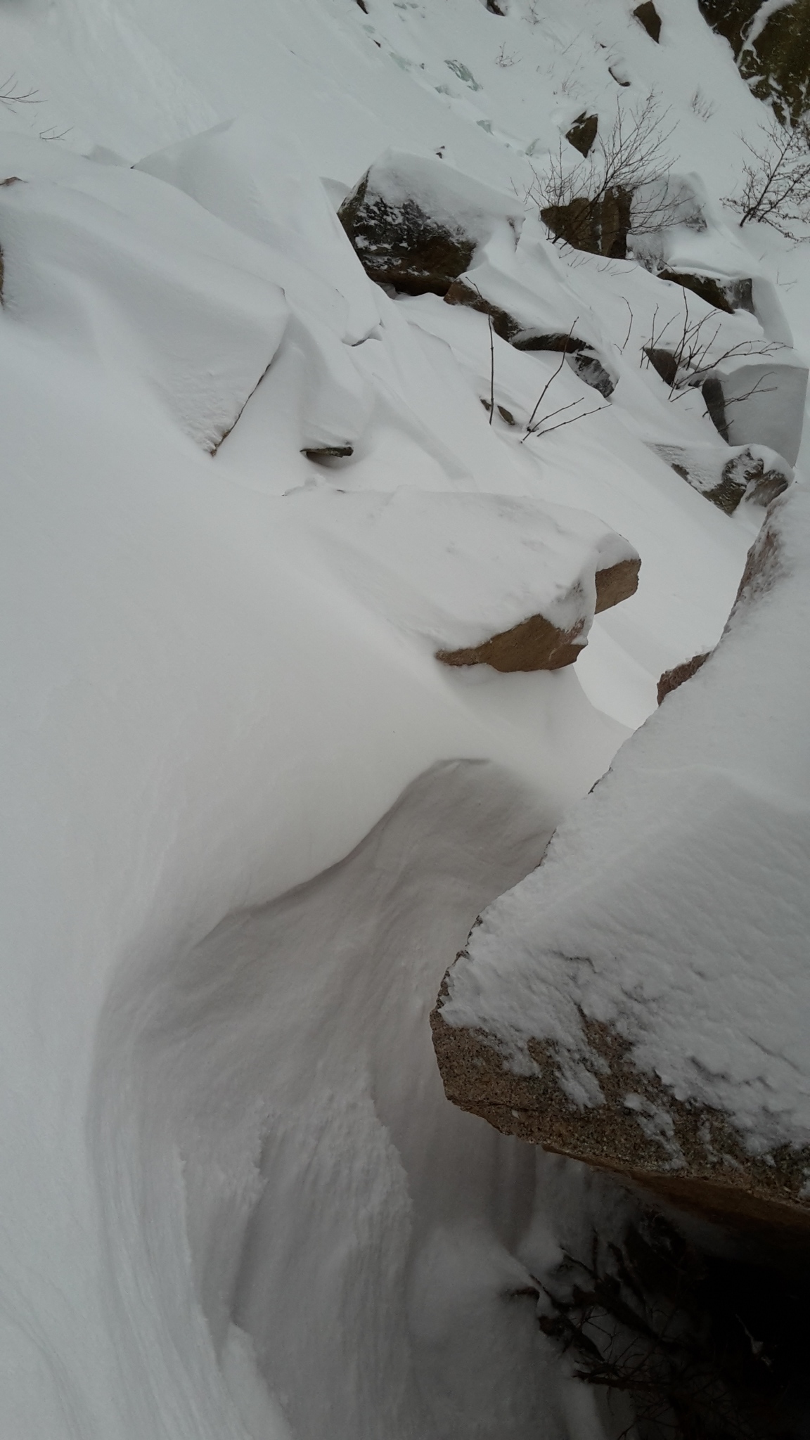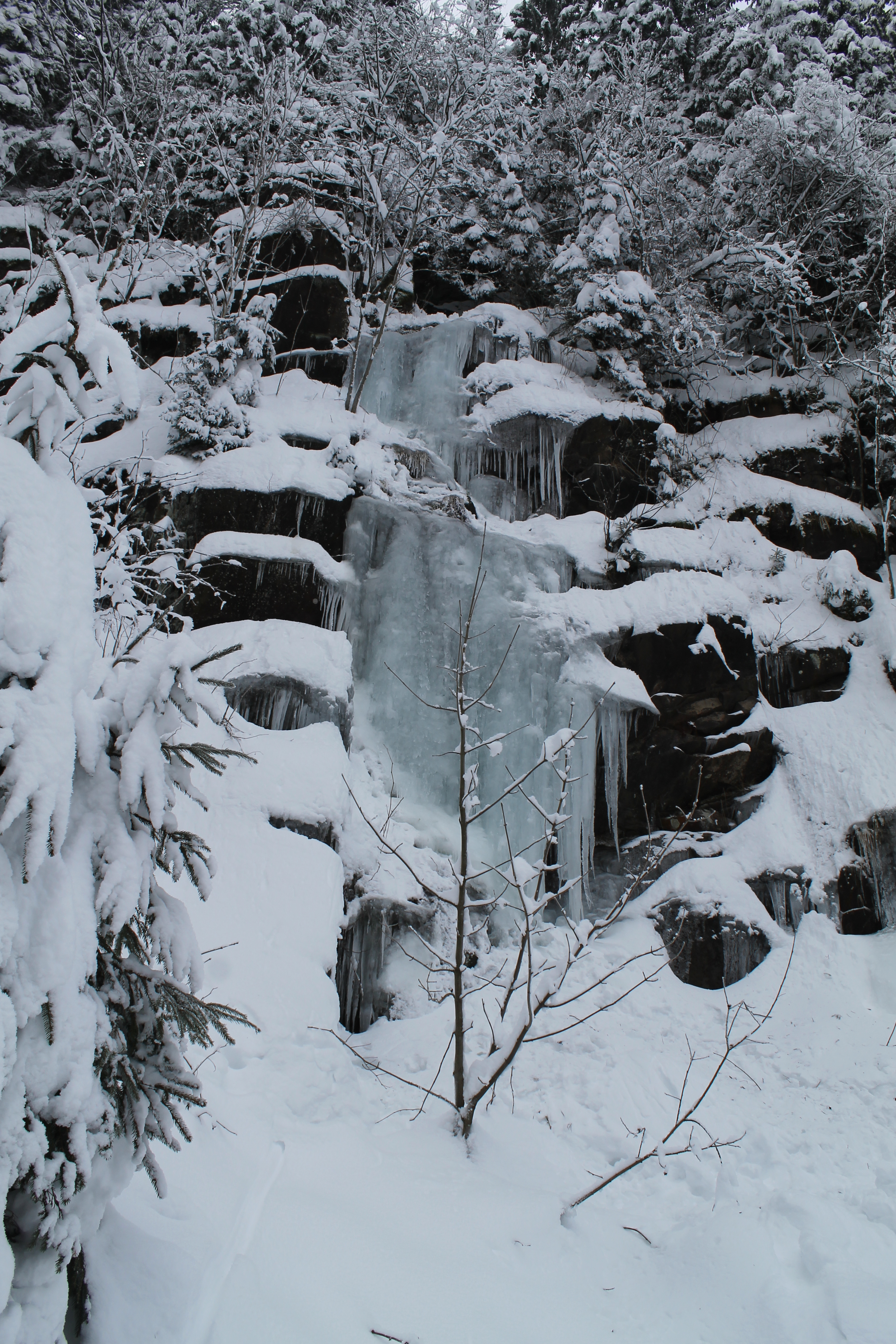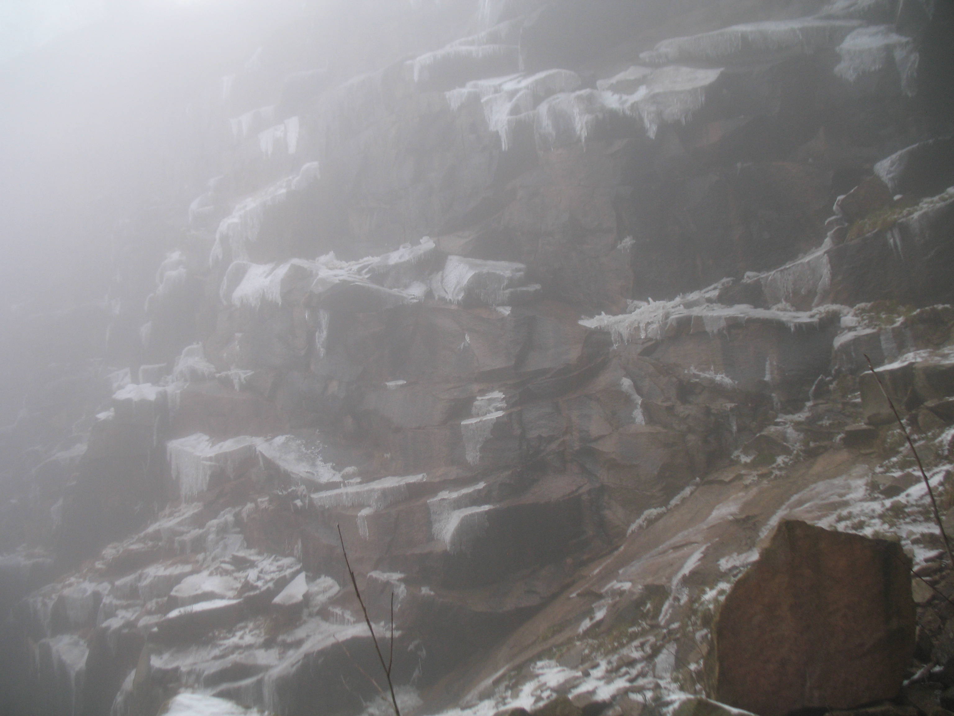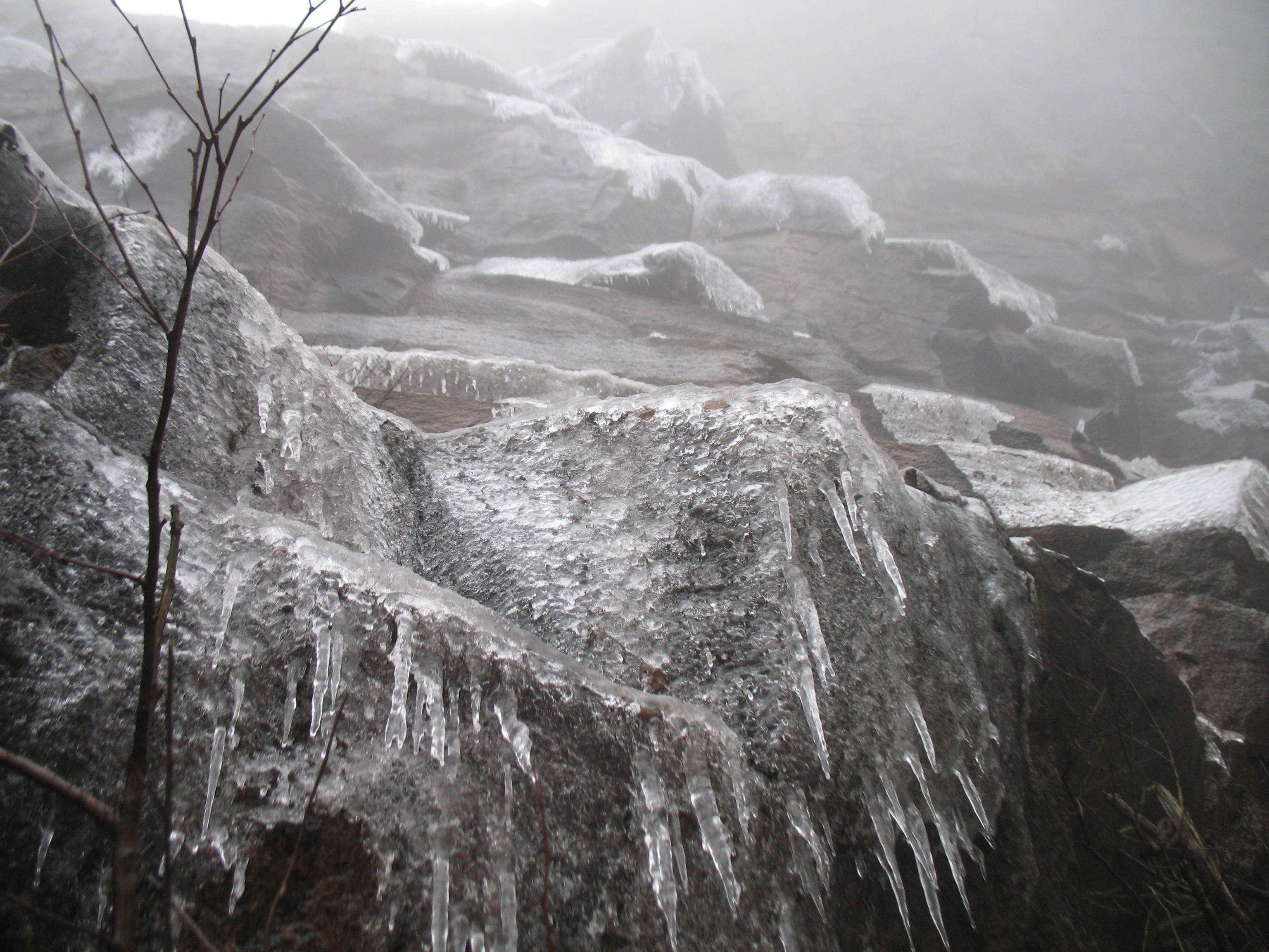 hing erstaunlich viel Eis in den Büschen und Bäumen die oben direkt an der Kante stehen. Der starke