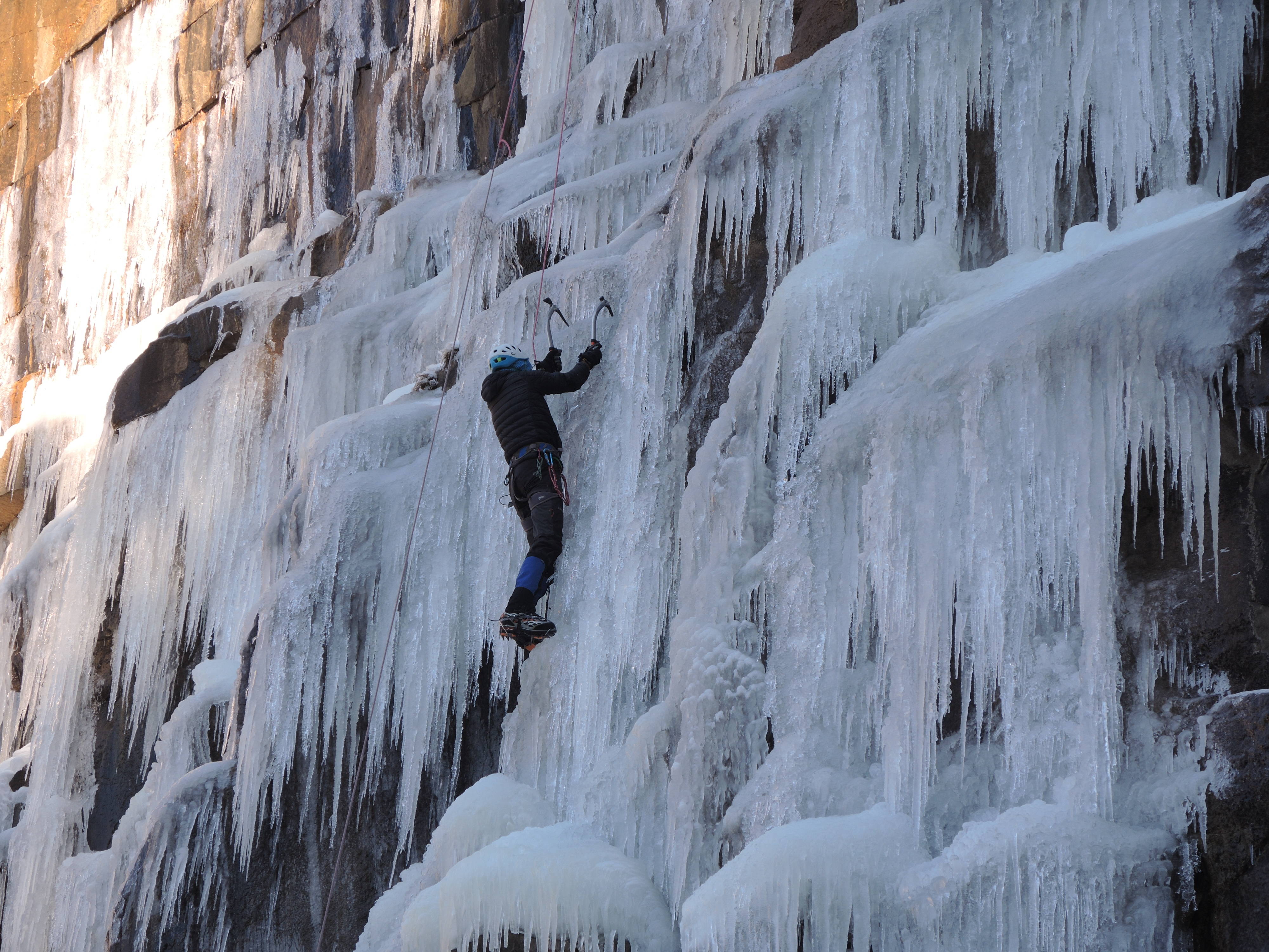 Dort gibt es 3 gute Wände die teilweise sehr gut mit Eis bedeckt waren, auf Grund der massiven Regenfälle der letzten Monate. Leider aber auch nicht gut genug für einen Vorstieg, deshalb alles nur im Toprope.