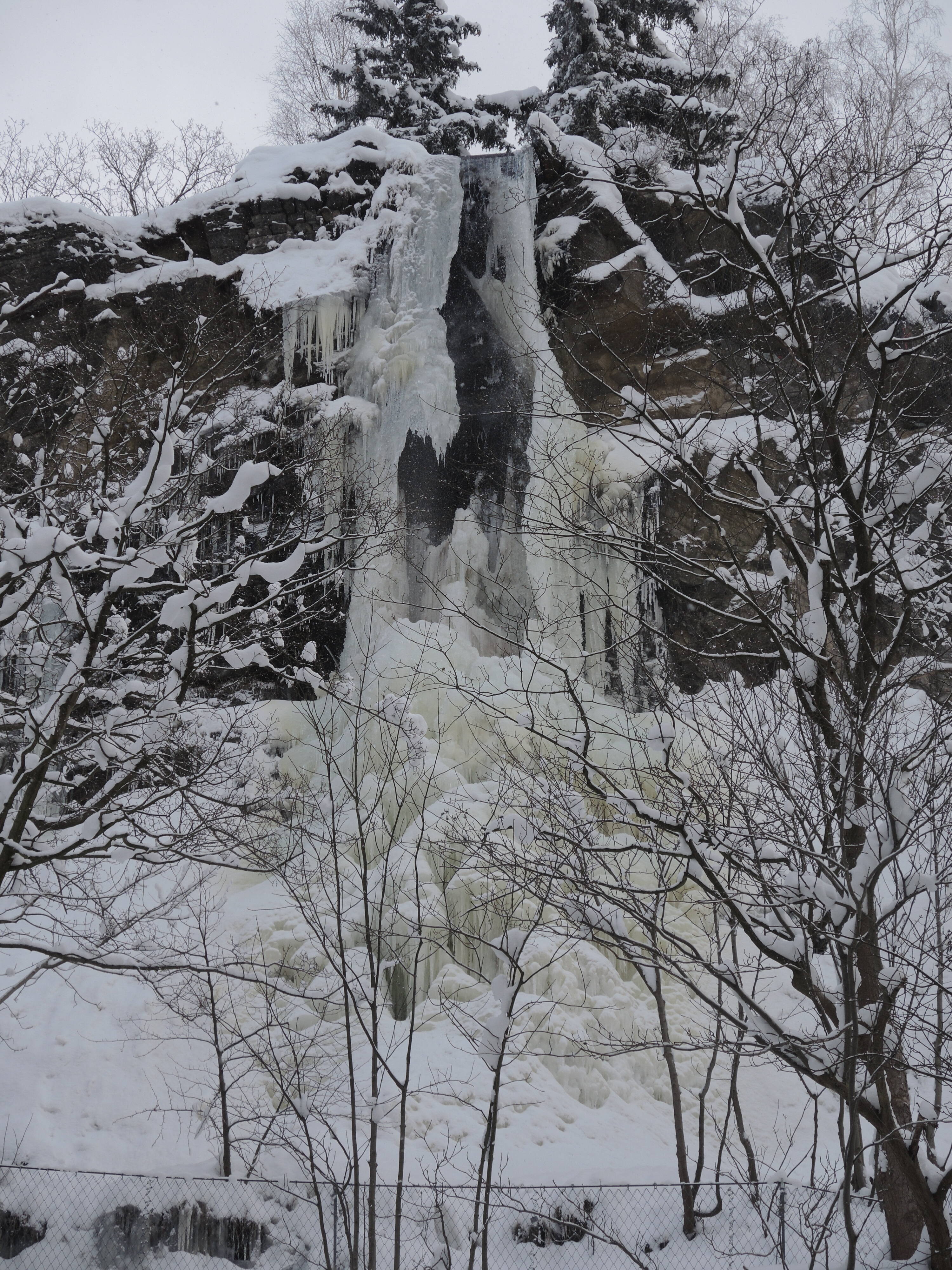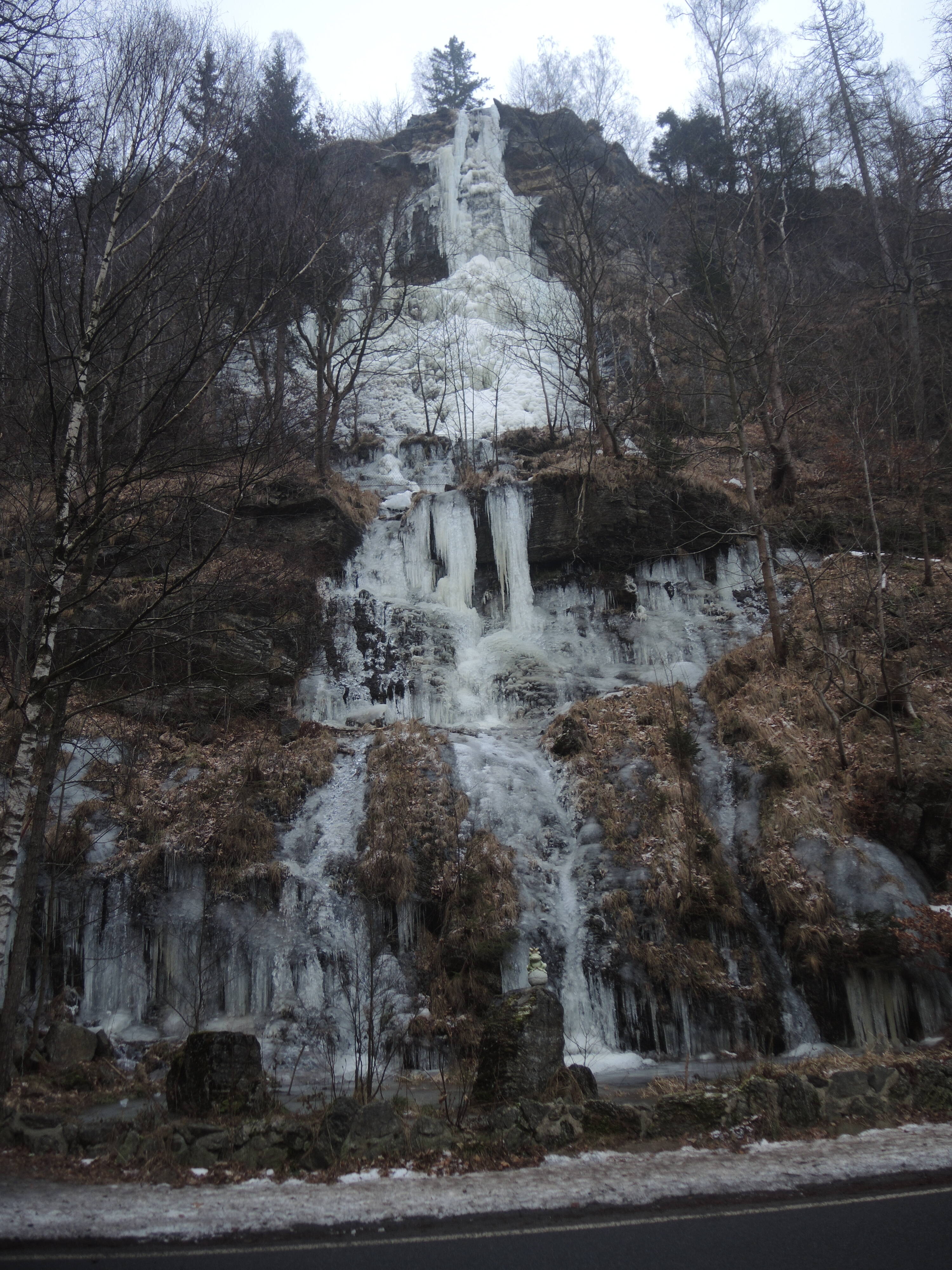 Das Thermometer an meinem Fenster zeigte heute morgen -19°! Als ich losfuhr warens noch -10°, in Romkerhalle nur noch -6°. Trotzdem ist der Wasserfall schon recht gut.
