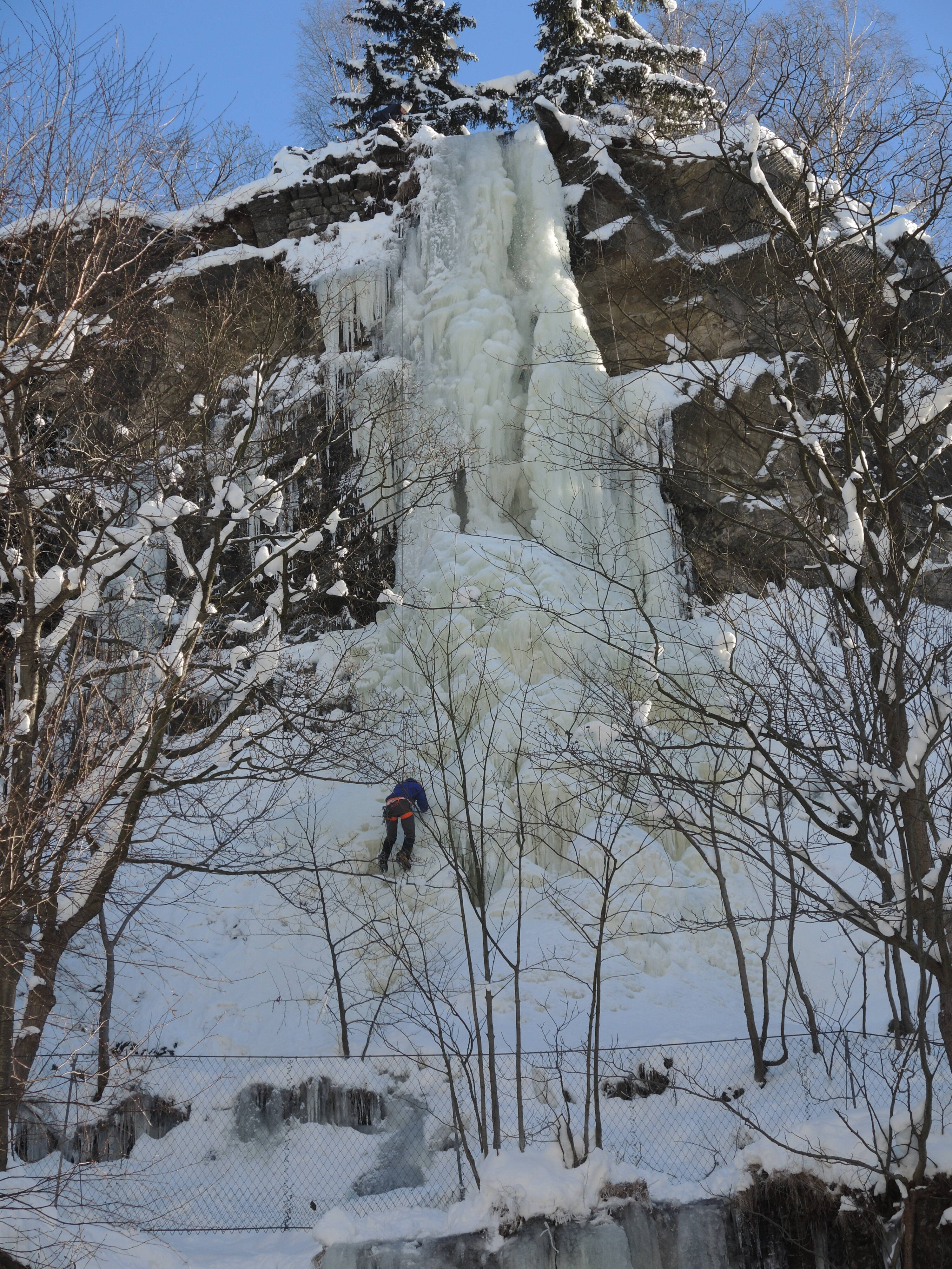 Die ganze Woche war es noch kalt, nochmal gute Verhältnisse! Aber im Gegensatz zu letzter Woche war heute am Romkerhaller Wasserfall (und wohl auch in den Steinbrüchen im Innerstetal, wie ich hörte) Massenandrang sowohl im unteren als auch im oberen Teil. Allerdings nicht nur Toproper und Solokletterer, sondern auch etliche Vorsteiger! Am Nachmittag wurde es dann etwas leerer. Und das Wetter erfreute uns wieder mit Sonnenschein.