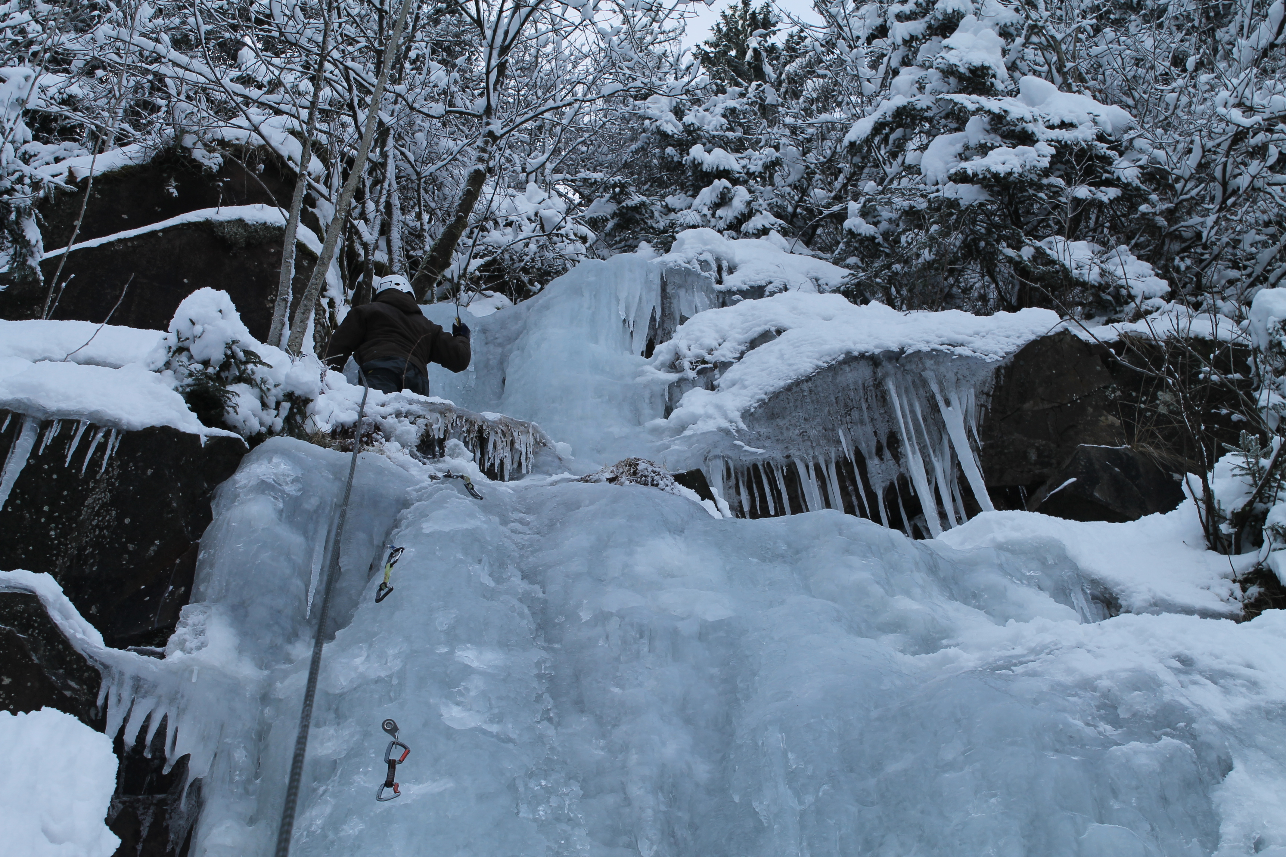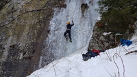Dort gibt es 3 gute Wände die teilweise sehr gut mit Eis bedeckt waren, auf Grund der massiven Regenfälle der letzten Monate. Leider aber auch nicht gut genug für einen Vorstieg, deshalb alles nur im Toprope.