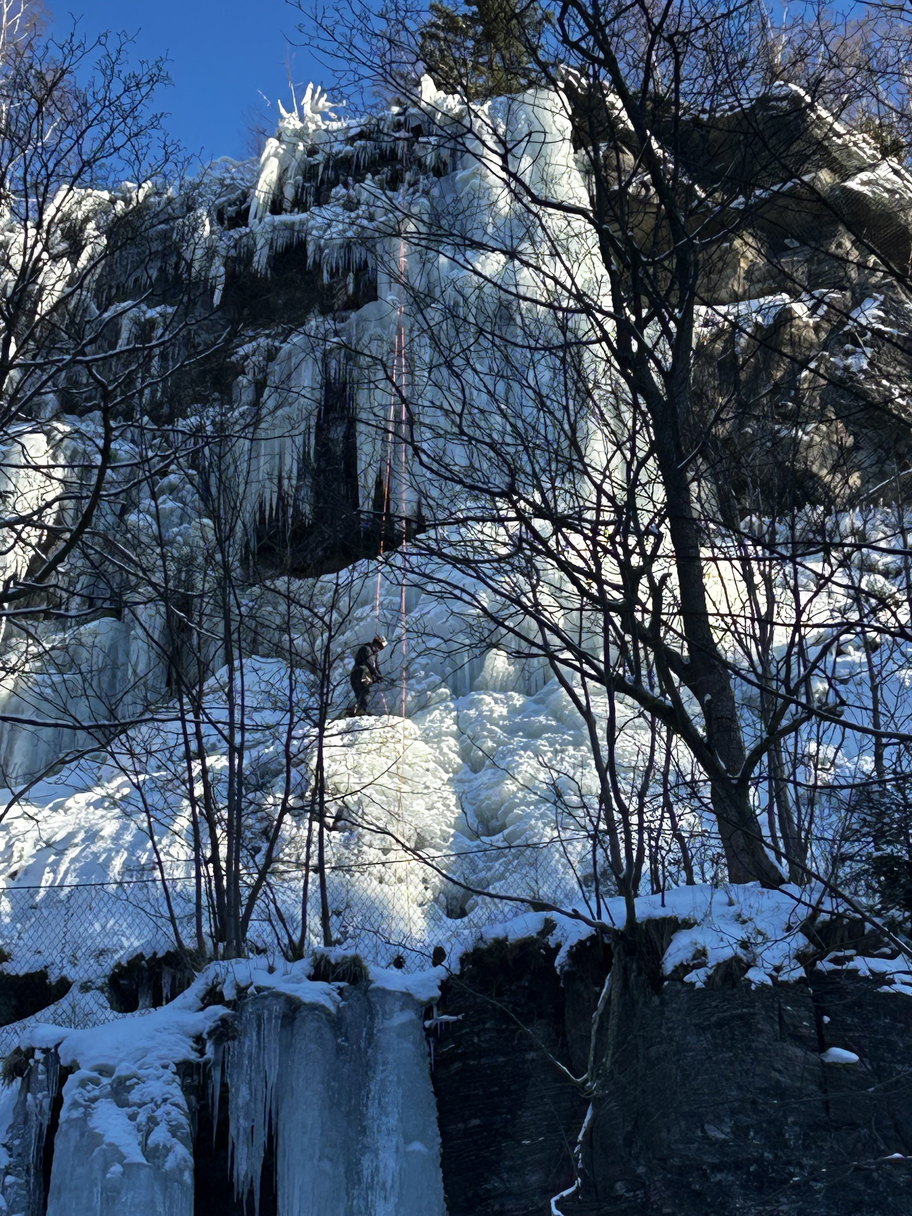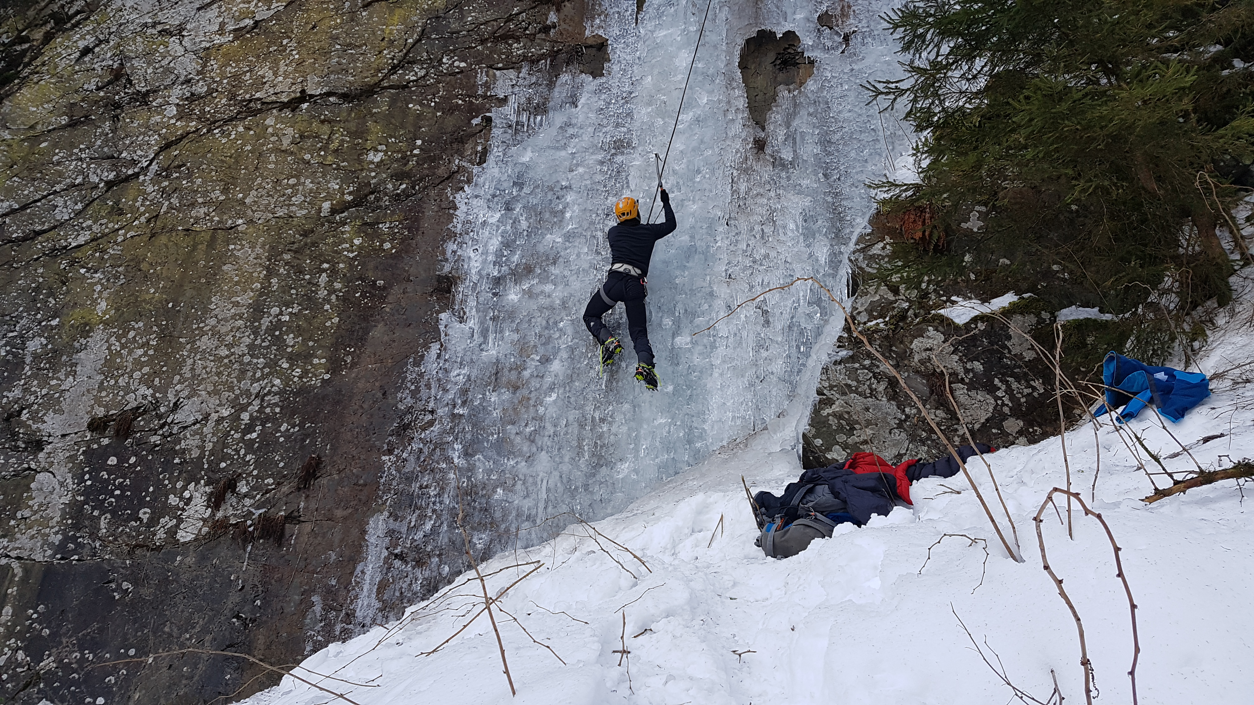 Ich kann mir gut vorstellen, dass wir hier die ersten waren, die hier Eisklettern gewesen sind.Gegenüber auf der anderen Bergseite des Tals haben wir riesige Zapfen und auch massive Säulen gesehen, das sah alles total super aus. Leider haben wir es nicht dorthin geschafft, vielleicht aber bei der nächsten Kälteperiode.
