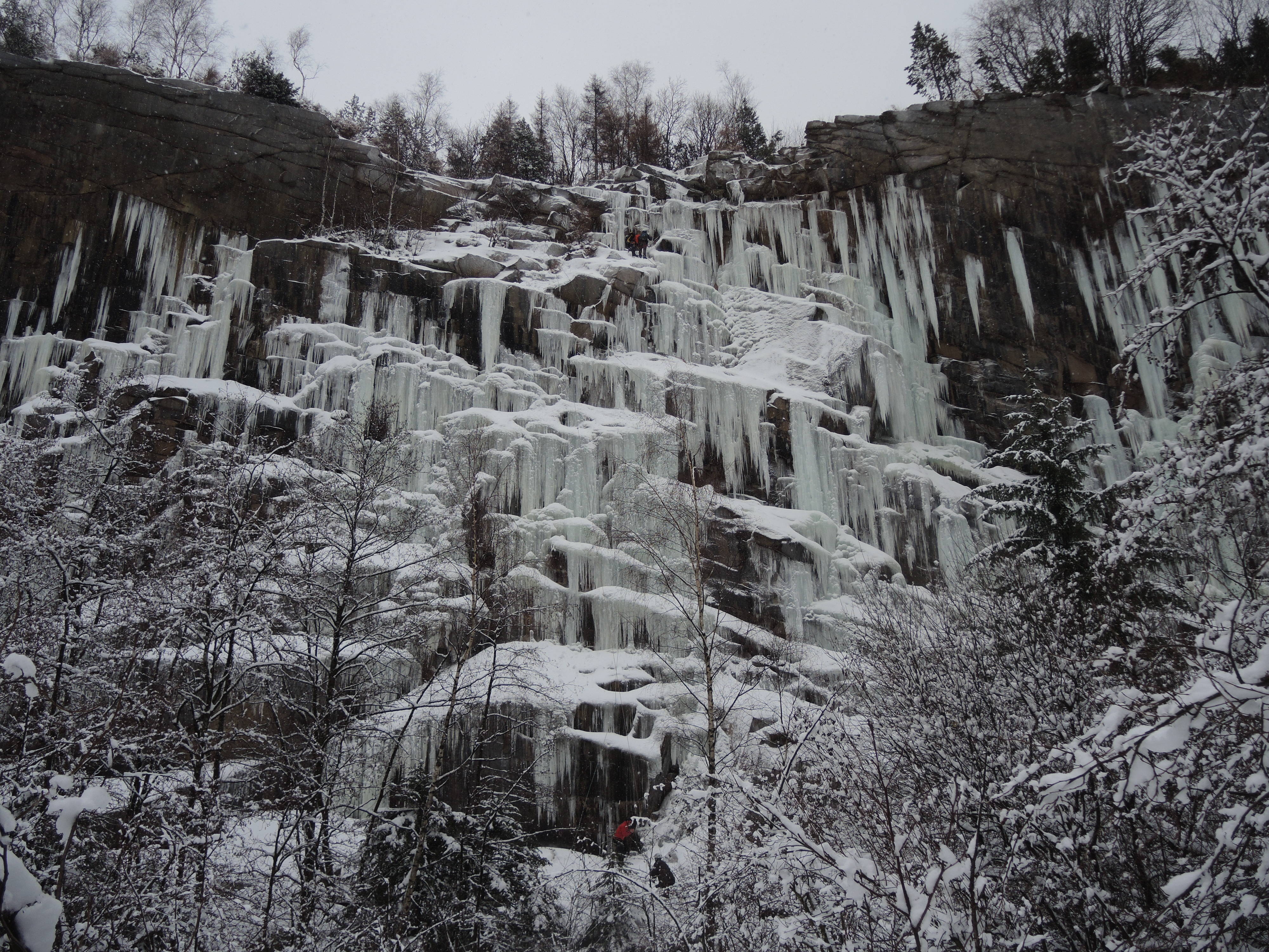 In der Tat ist das Eis gewachsen, mir wärs aber noch zu wenig gewesen. Aber ein Hamburger Pärchen mit einem Gast aus der Karibik(!) vergnügten sich im Toprope. Aber es soll kalt bleiben, da erwarte ich nächstes Wochenende Hochbetrieb! Allerdings dürfte früher Beginn sinnvoll sein. Aufgrund der schönen Sonne steigen die Temperaturen am Nachmittag an die Null Grad und dort wo die Sonne hinscheint (besonders im linken Wandteil) fällt reichlich Eis runter.