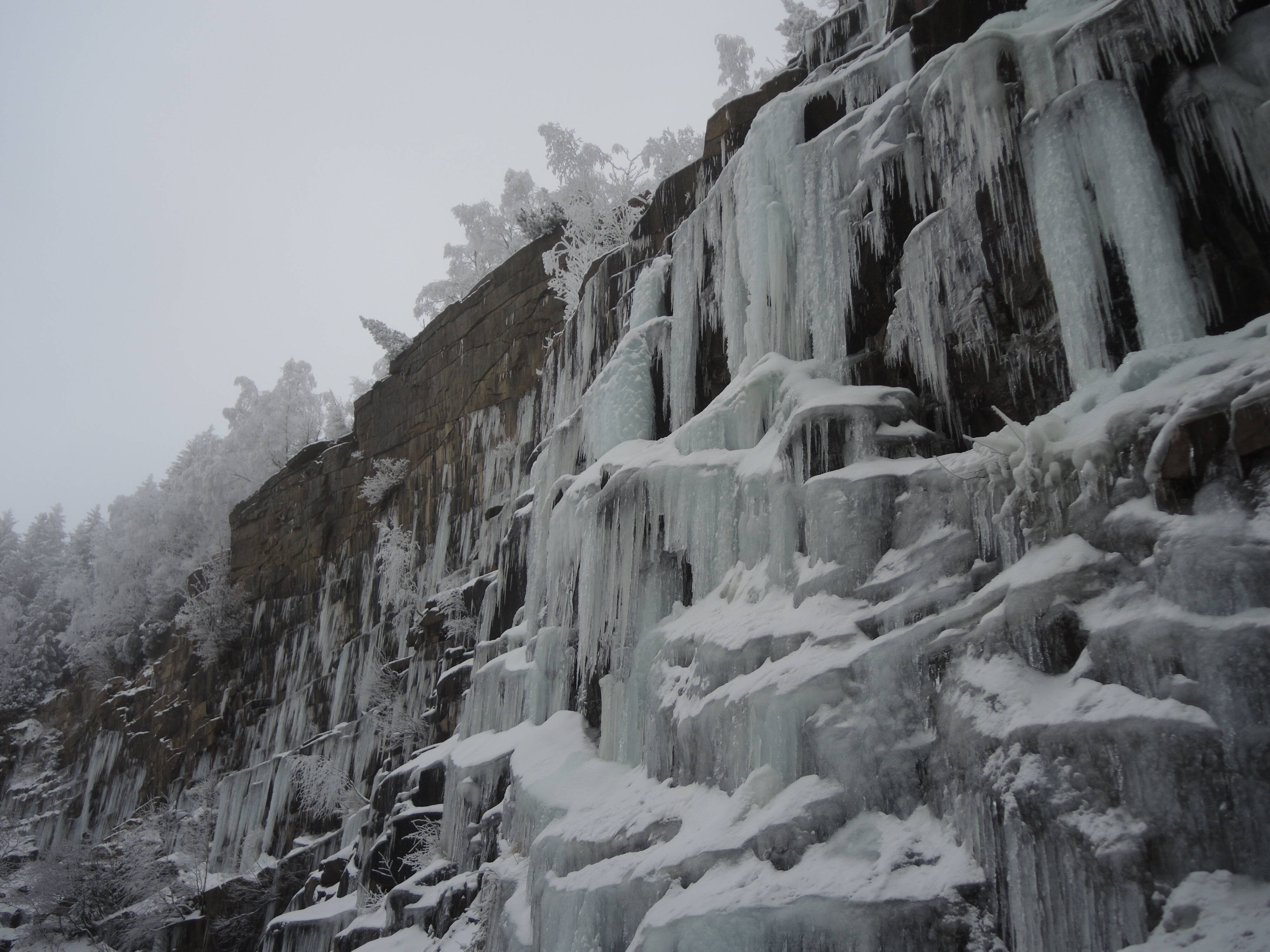 Die Woche war es tatsächlich kalt. Im Harz herrscht eine Inversionswetterlage. Im Tal neblig und kalt, über dem Nebel deutlich wärmer. Der Wurmbergsteinbruch liegt noch in der Nebelzone, da ist das Eis tatsächlich gewachsen. Auch am Romkerhaller Wasserfall bildet sich Eis.