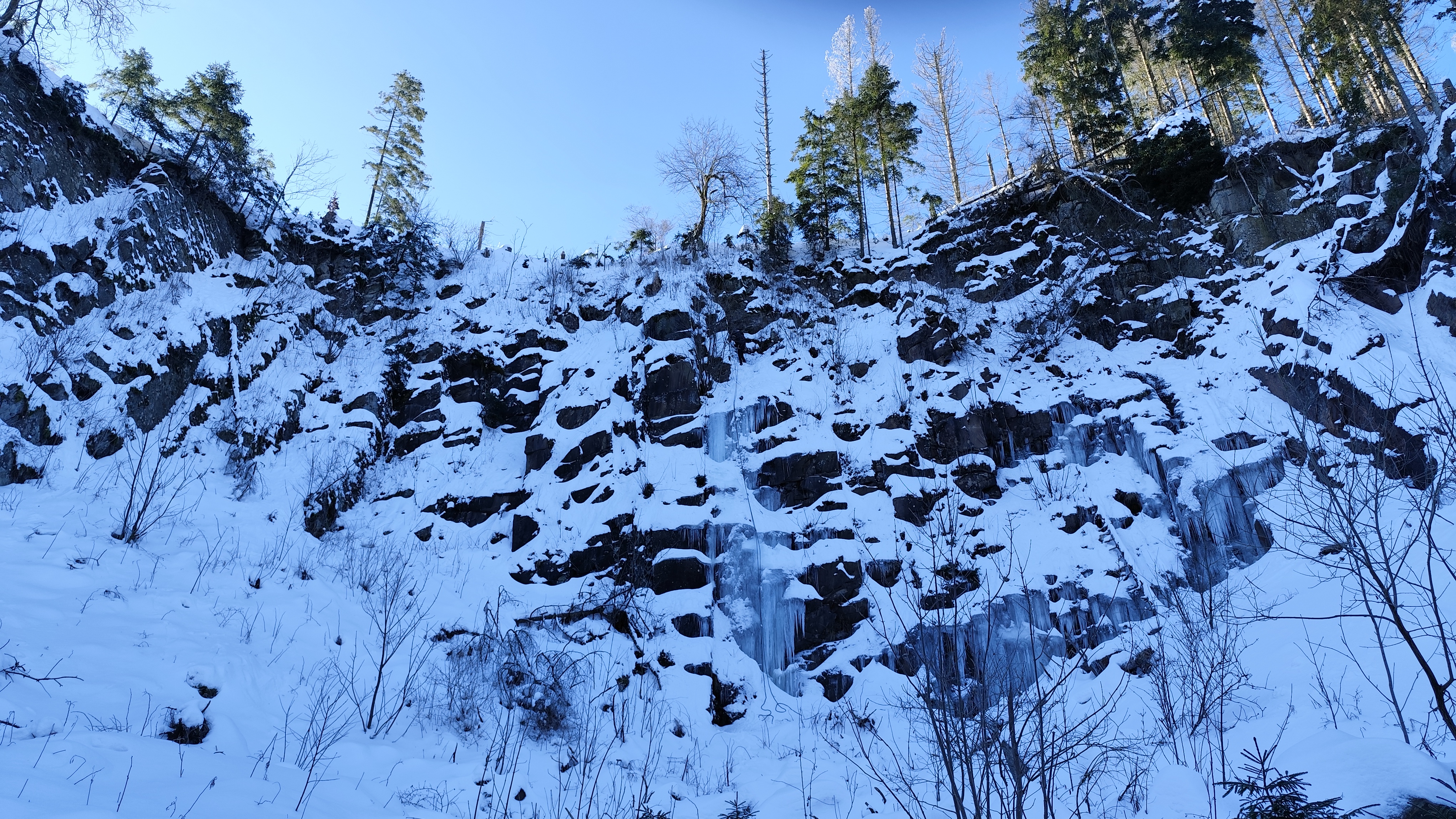Nur aus Spaß hab ich heute mal in den Wurmbergsteinbruch geschaut. Trotz Plusgraden in den letzten Tagen hing doch noch erstaunlich viel Eis herum. Und wer weiß, die nächsten 14 Tage soll es nochmal kalt werden. Da geht Ende Januar vielleicht nochmal was.